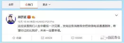 吃瓜群众我们再回到郑胡两人身上,小编觉得虽然他们都是公众人物,但也有自己的私人空间,只要他们彼此喜欢,我们还是要给予祝福的。但胡彦斌决绝地发微博说以后不再联系,似乎并未考虑好郑爽的感受,但郑爽也没有给出确切的消息,不知她此时作何感想呢。这时不禁感叹:娱乐圈的男女分分合合太常见了!