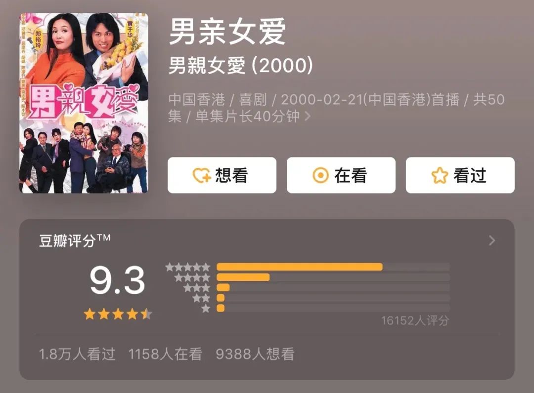 看TVB长大的你们,童年一定会有这部《男亲女爱》。 这部戏口碑收视双丰收,还创下TVB史上最高收视50点纪录。