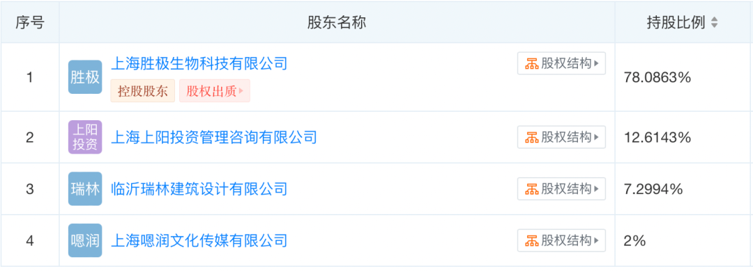 上海妆滟庭贸易有限公司其控股股东是上海胜极生物科技有限公司/图源:天眼查