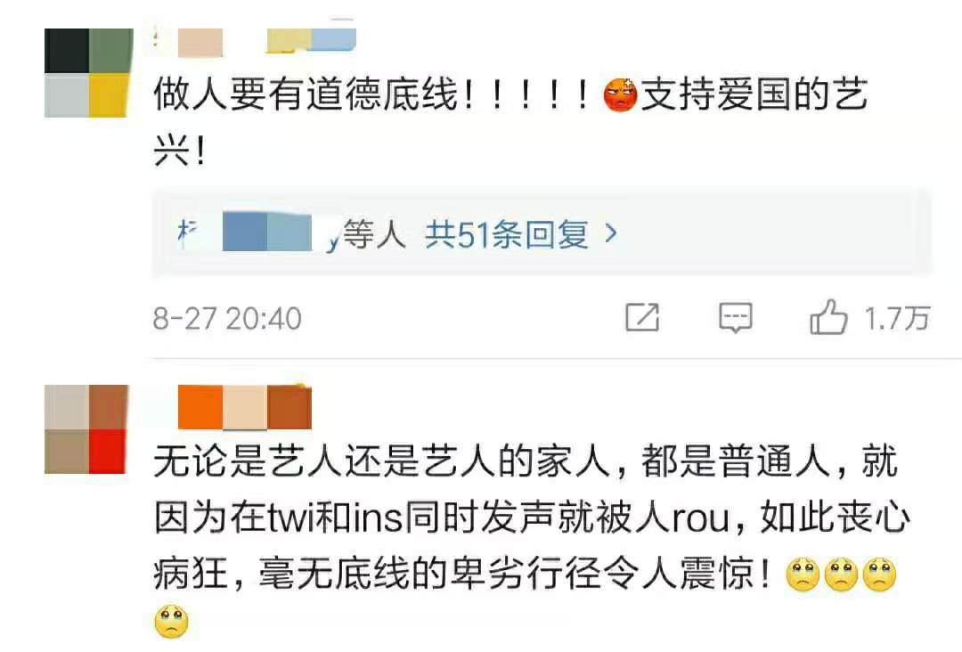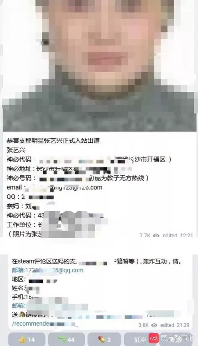 张艺兴撑港警后被人肉!妈妈发博愤怒警告 AI搜索 内地男星 2019-08-31 19:19:58 610 创作不易,用心坚持,欢迎请BaGua喝几杯爱心咖啡!打赏并支持本文 打赏并删除本文 点击上方蓝色字关注我们~文 | 佚名来源网络 | 女人故事日前,张艺兴在微博、推特和Instagram等社交网络上为香港警察发声、撑港警,遭到部分网友攻击。昨天(27日)傍晚,认证为张艺兴妈妈的微博用户@奇葩老妈 发微博警告:“我不怕你!你这种违法行为必然会受到法律的严惩!”该微博引发网友热议,一度登上热搜第一。近日,不少内地艺人就香港乱局接连发文,力挺香港警察。8月14日,张艺兴就在推特、微博、Instagram等社交媒体平台发布“我支持香港警察,你们可以打我了”的图片,为港警发声。但是,张艺兴貌似因此举而遭到部分网友攻击,更有人在社交平台发布其家人私人信息,并利用张艺兴本人身份证申请器官捐赠。据网友发出的截图,证实张艺兴的身份证号、家庭住址、QQ等个人信息被曝光,更有甚者盗用张艺兴的个人信息报名登记了器官捐赠。此外,张艺兴妈妈的照片、手机号、工作单位也被公开。被曝光的张艺兴及其母亲的个人信息。张艺兴疑似被盗用个人信息报名登记器官捐赠。8月27日晚,张艺兴妈妈发布微博表示强烈谴责。她愤怒地表示:“我知道艺人是个被讨论的职业,但怎么做艺人的家人也要被威胁、被人肉!不过,今天我警告你,我不怕你!你这种违法行为必然会受到法律的严惩!爱国爱家是每个中国人最起码的做人准则,我们做该做的,没想谁夸但谁也别吓唬我!捐赠器官是多么高尚的行为,却被拿来泄私愤,我为做这件事的人感到可耻!”如此刚的言论,也让“张艺兴妈妈发博”的话题在当天登上微博热搜榜首位。网友也纷纷留言力挺:“挺张艺兴妈妈,张艺兴妈妈好刚啊……”“家人是底线!必要时报警处理吧!”“生而为人,请善良。”南方都市报(nddaily)报道南都记者 刘平安 蒋琳你点的每个“在看”,我都认真当成了喜欢 创作不易,用心坚持,欢迎请BaGua喝几杯爱心咖啡!打赏并支持本文 打赏并删除本文 感谢您的支持鼓励,我会继续努力的!文章地址:用户邮箱:打赏金额:USDT 请输入数字点击”去打赏“,即可进行打赏支持本文章哦 张艺兴 About the Author AI搜索 功能介绍:AI视频搜索系统. Related Posts 张艺兴撑港警后被人肉!妈妈发博愤怒警告 2019-08-31 19:19:58 发表评论