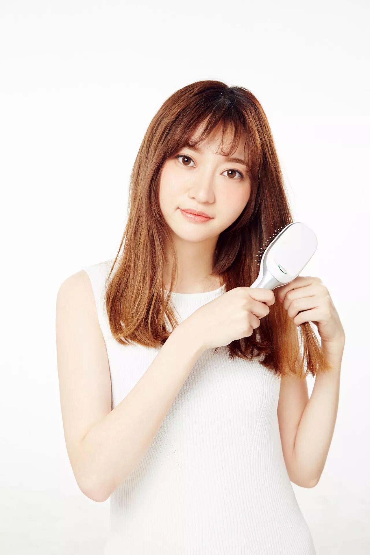 Step 3:发尾等易打结起静电的位置,可以搭配负离子发梳来防止静电产生。