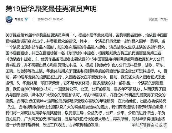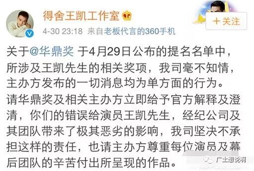 后来还是华鼎奖发声明后才让掐架停止下来,而且事实证明这跟胡歌、王凯本人并没有关系……