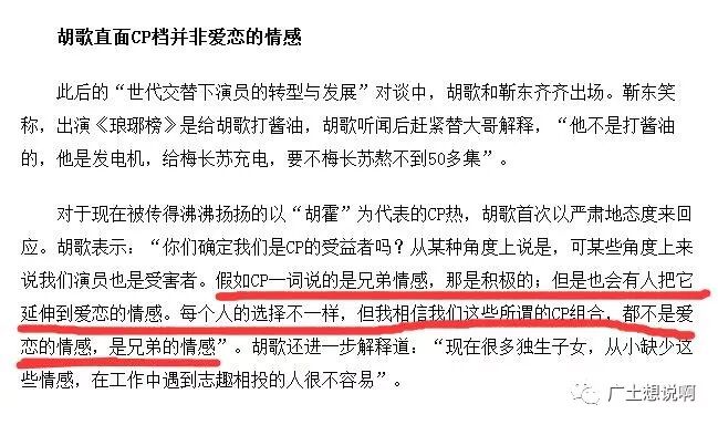 兄弟俩明明感情这么好,粉丝之间也就别再互相“掐”了,至于你们所纠结的“炒CP”这个话题,其实胡歌之前已经回应过。