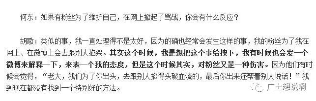 其实粉丝之间的“掐架”行为也会影响到自己的爱豆,胡歌对此也表示很无奈。