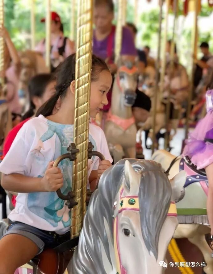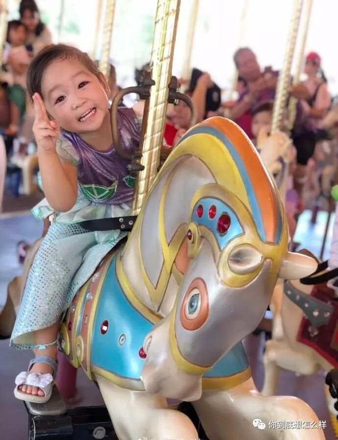 蒋丽莎的小女儿丫丫也完全不输贝拉,趴在旋转木马上双手比V,可爱十足,连整个表情都十分抢镜,简直就是个“戏精本精”了!古灵精怪的样子招人喜爱不已。