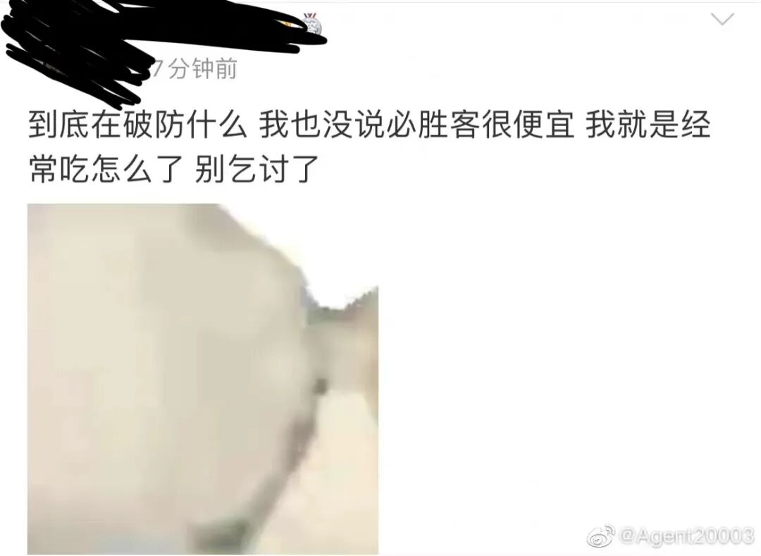 “破防什么?我也没说必胜客很便宜,我就是经常吃怎么了?别乞讨了。”
