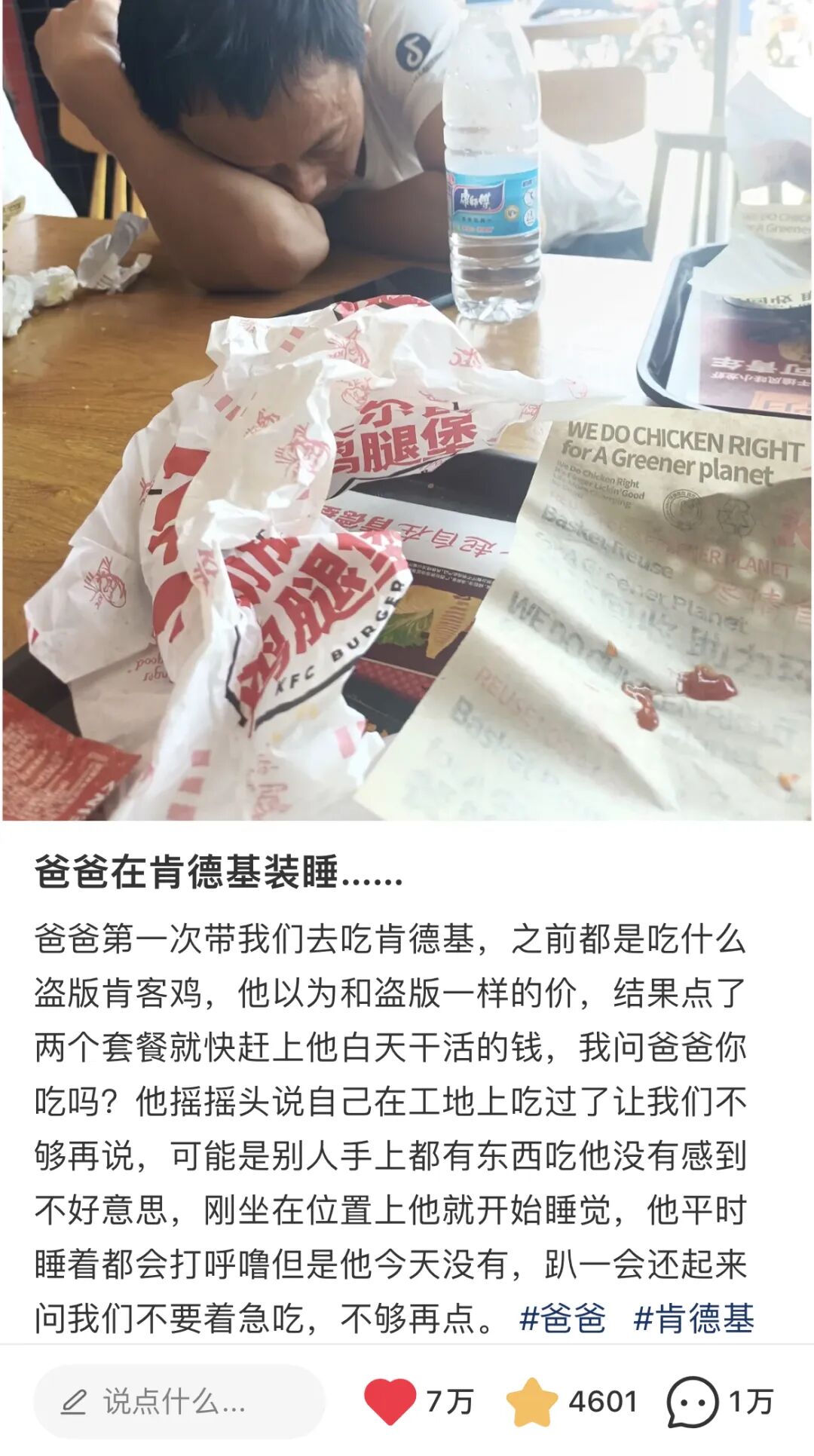 她可能不知道,昨天一个在肯德基装睡的爸爸才刚刚上了热搜。