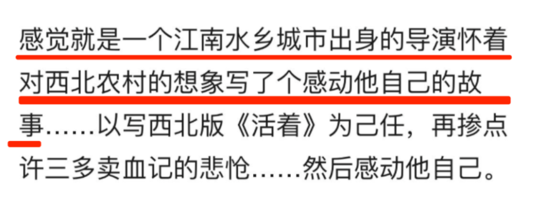 “感觉就是一个江南水乡城市出身的导演怀着对西北农村的想象,写了个感动自己的故事。”