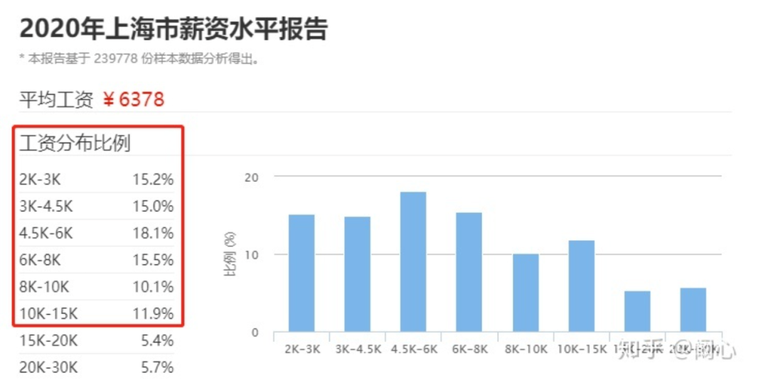 实际呢?上海2020年薪资水平数据显示,月入过万的人只有20%。