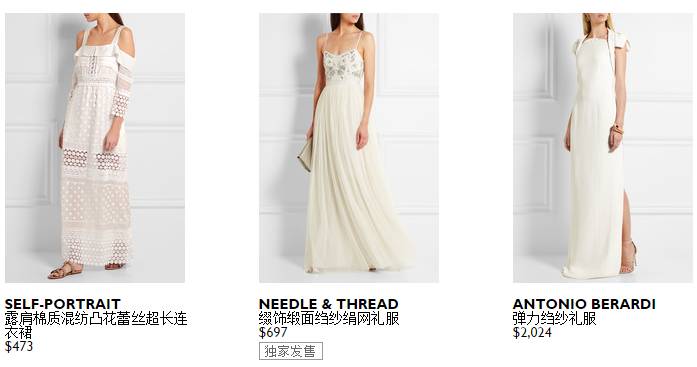 电商平台NET-A-PORTER.COM和Needle & Thread,Temperley London也有合作推出婚纱系列,并且独家在NET-A-PORTER.COM限量发售,价格基本在5000到10000元左右,也是很平价划算的婚纱系列。