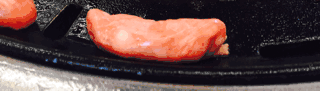 猪五花肉,这个在烤肉店很普遍吧,但你有没有觉得这个五花很均匀嘛。大家买肉的话应该都知道猪的五花肉(又称肋条肉、三层肉)位于猪的腹部,猪腹部脂肪组织很多,其中又夹带着肌肉组织,肥瘦间隔,故称“五花肉”。而最精致均匀的那块会被老板直接预订高价买回来,一般肉店才不会喜欢把这么好的肉单独卖。