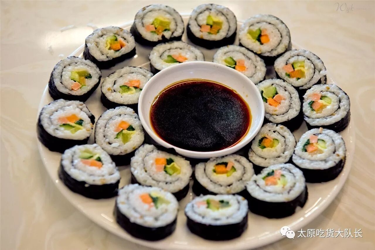 韩国紫菜包饭是由日本寿司演变而来的一种包饭。它的食材包括米饭、紫菜、鸡蛋、胡萝卜、火腿肠、菠菜、猪肉松。阿泽西家现做的,还有酸黄瓜在其中,味道真的低调奢华有内涵。