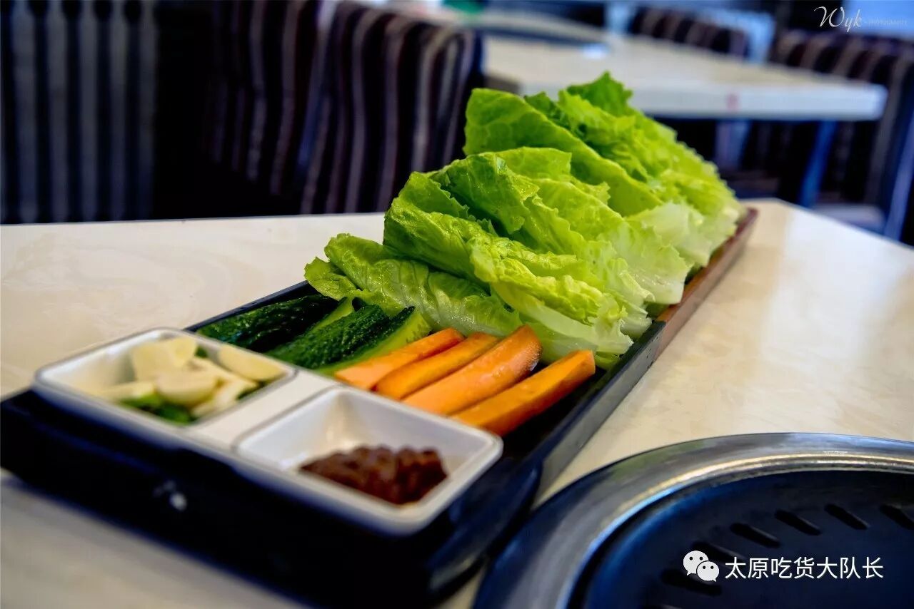 看看谁家的烤肉能给这么多生菜,我觉得抱着这个吃就好满足,每一桌都长长的一溜儿。后面有个独家的大招给你们介绍,你就知道万能的生菜和大招有多么配。