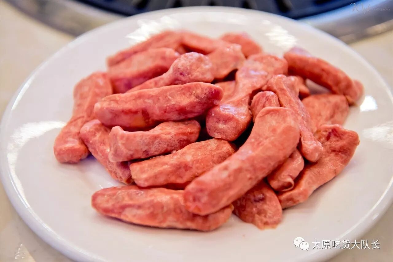 这个肠放到火上之后你会看到神奇的变化,他会慢慢的像打了气一样鼓起来,绝对和外面的妖艳xx烤肠不一样,这个烤完极其Q弹,有一点点甜,吃一个就停不下来了。超香,特别实在的肉。