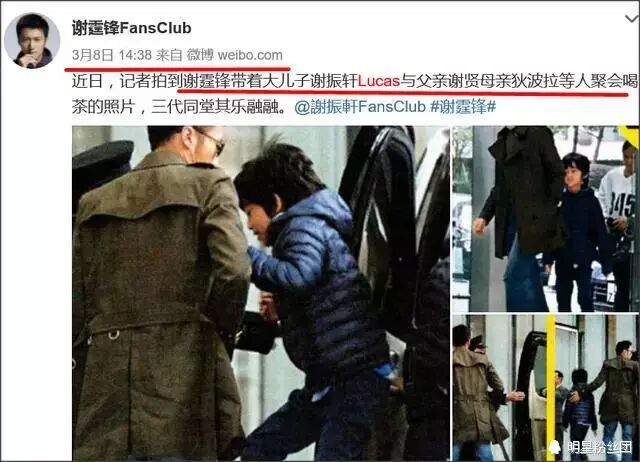 Lucas五岁生日,张柏芝谢霆锋一起到拉姑家庆祝。之后有网友拍下霆锋、Lucas和谢贤,三爷孙在金钟一酒店的泳池嬉水。