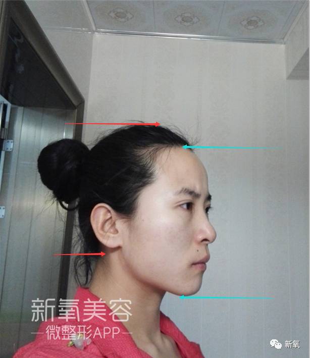 而且从正面来看,妹子的脸部宽度OK,所以问题没有侧面脸长那么明显,如果盲目下移还有可能正面三庭失调。