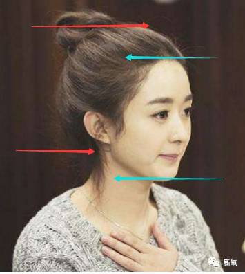 妹纸的丸子头侧面,看出来区别了吗?妹纸的脸部长度偏长,绿线与红线的高度比例失衡。