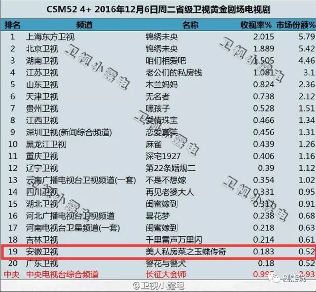 安徽卫视0.26、浙江卫视0.184,还一路下滑,截至目前已经跌出卫视排名五十名开外,打破了所有小花主演过的电视剧收视率的最低记录,前所未有。