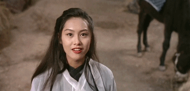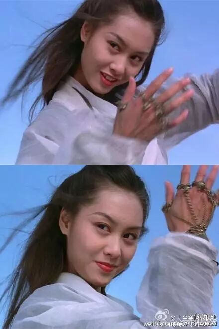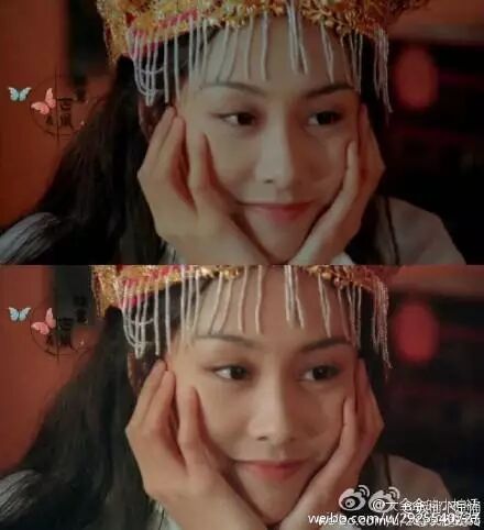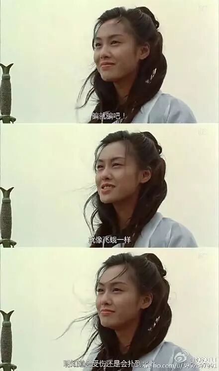 唐嫣的紫霞仙子是抿嘴笑,朱茵的是咧嘴笑的……