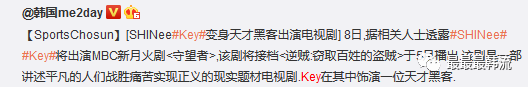 今天上午韩媒爆出消息,SHINee成员金基范将出演MBC的新剧《守望者》,饰演一名网络黑客。