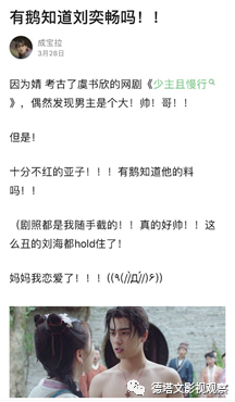 因此这部剧虽然是小成本之作,但找准了青春向的“新国风”审美,找准了梦幻少女心的卖点,实现了对青少年女受众的精准服务,自然会在垂直细分市场受到关注。而四个男性角色中,又以“独孤牧雪”的扮演者刘奕畅受到了更多关注。
