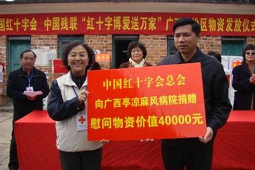 我们要以本次“红十字博爱送万家”活动为契机,弘扬“人道、博爱、奉献”的红十字精神,深化人道公益领域的各项工作,动员更多的社会力量参与支持推动红十字事业的发展,推进社会主义和谐社会建设,为实现富民强桂新跨越作出新的更大贡献。