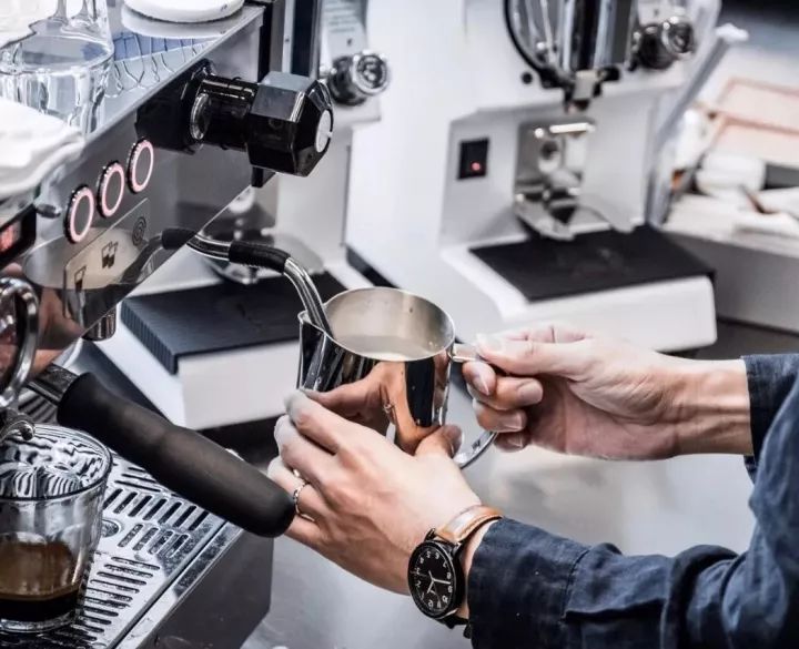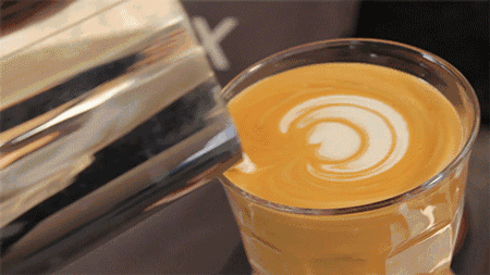 看似随意的几下,一杯意式拿铁就诞生了,近乎完美的拉花让人舍不得喝。