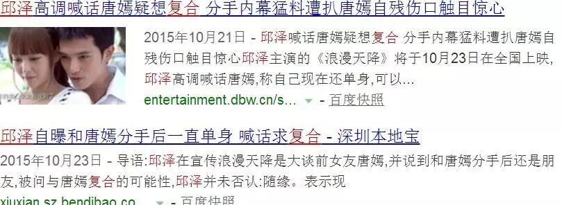 唐嫣爆红后,邱泽在宣传期还故意提起唐嫣想要复合,结果自然被网友群嘲,可能是忘了当初不愿公开恋情怕掉粉的时候。