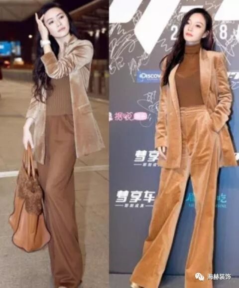 当时李小璐穿着一身丝绒西装去参加了活动,但是尴尬的是竟然和别人撞衫了。