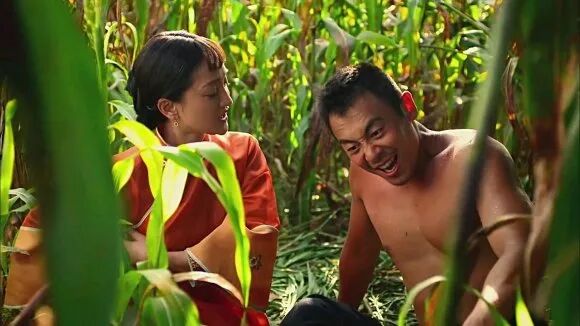 半路,土匪余占鳌劫持了九儿的花轿,把她抱进高粱地。