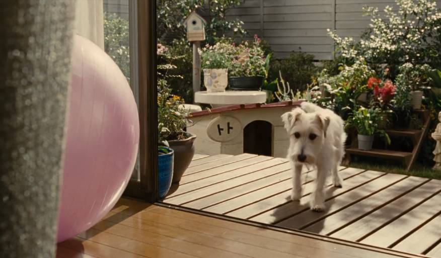 原版是从家里的宠物狗开始,宠物狗做结,《麻烦家族》连这样的镜头也照搬不误。