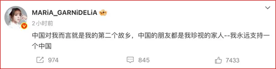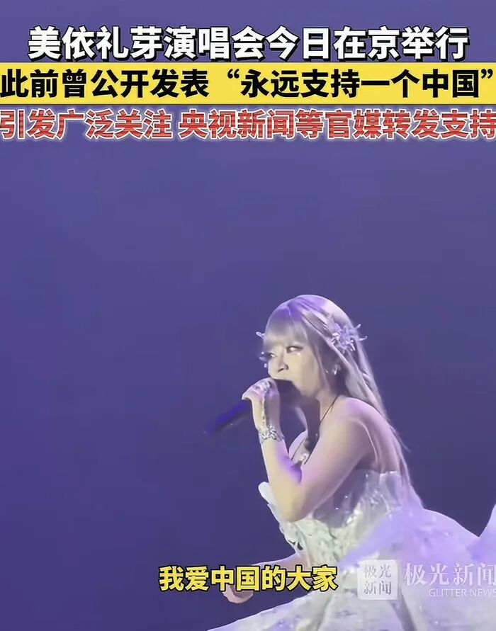 11月18日,日本歌手美依礼芽在自己的中文社交账号发文:“中国对我而言就是我的第二个故乡,中国的朋友都是我珍视的家人——我永远支持一个中国。”