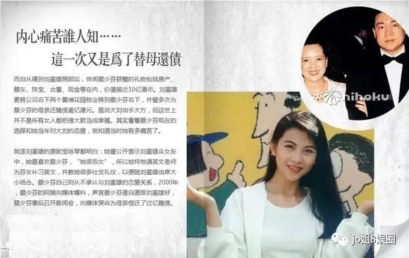 直到那时,人们才又想起蔡少芬与大刘之间的关系,这个女孩早已用十年的青春与努力让香港人几乎忘掉了多年前那场轰动全港的百万生日宴,如今,却因为母亲的赌债而再度被一众媒体挖出大刘数次为蔡母还债的事,而他们之间隐匿多年的关系也浮出水面。