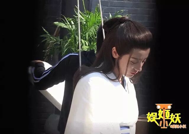 稍后,热巴还有一场需要从屋檐吊威亚跳下的戏份,当被威亚缓缓吊起时她还露出了一副生无可恋的样子,再对比一下其他张照片发现当天她在片场好像是真不开心了,完全没有笑容,但还是敬业完成了拍摄的任务。