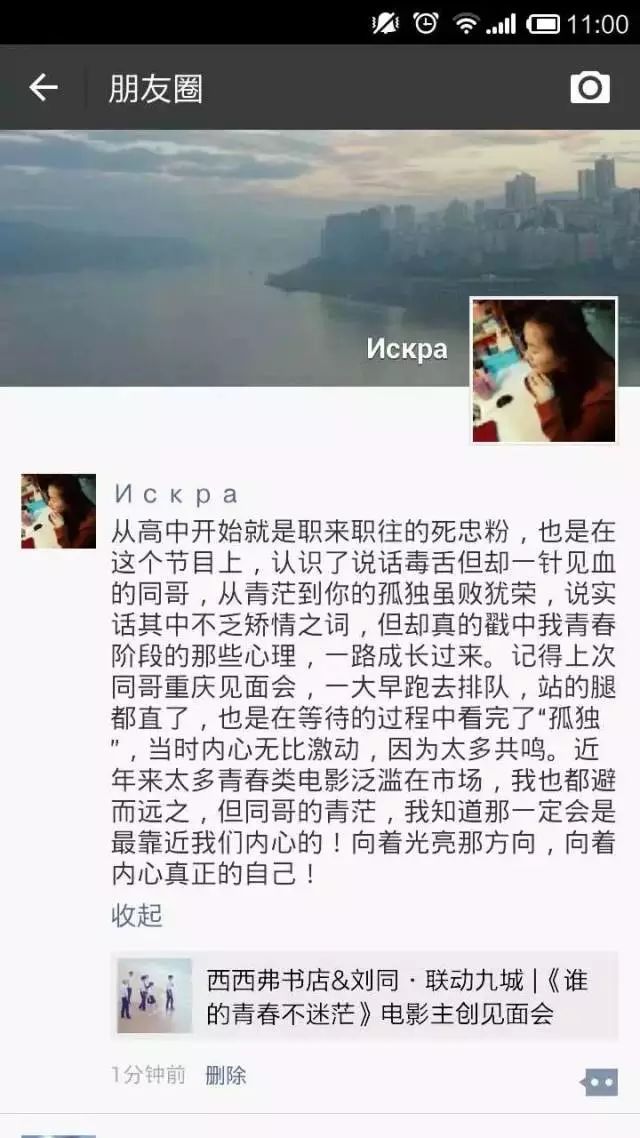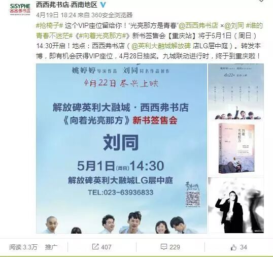 3月27日,我们发布了第一条重磅消息,西西弗书店&刘同·联动九城 |《谁的青春不迷茫》电影主创见面会暨《向着光亮那方》新书签售会