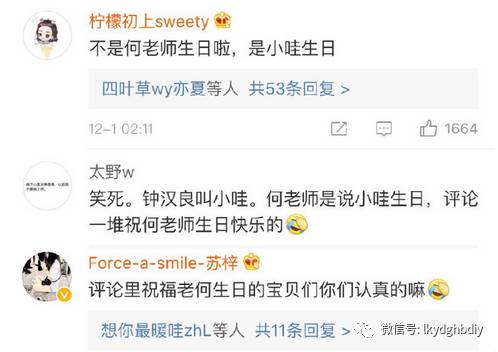 网友都以为何老师过生日了,纷纷送上生日祝福