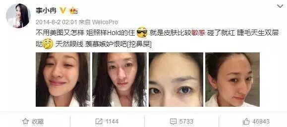 李小冉也在微博说过,自己皮肤比较敏感,受到刺激时就很容易变红