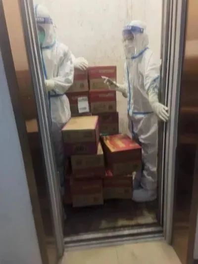 在这9天里,志愿者们保障了隔离楼学生的一日三餐,运送了近800桶水、200箱泡面、200箱香蕉、成箱的垃圾桶和被褥等,跟随协助转出核酸异常人员上百名,最长时连续工作六小时不喝水不脱防护服,每天转运生活垃圾近百袋。