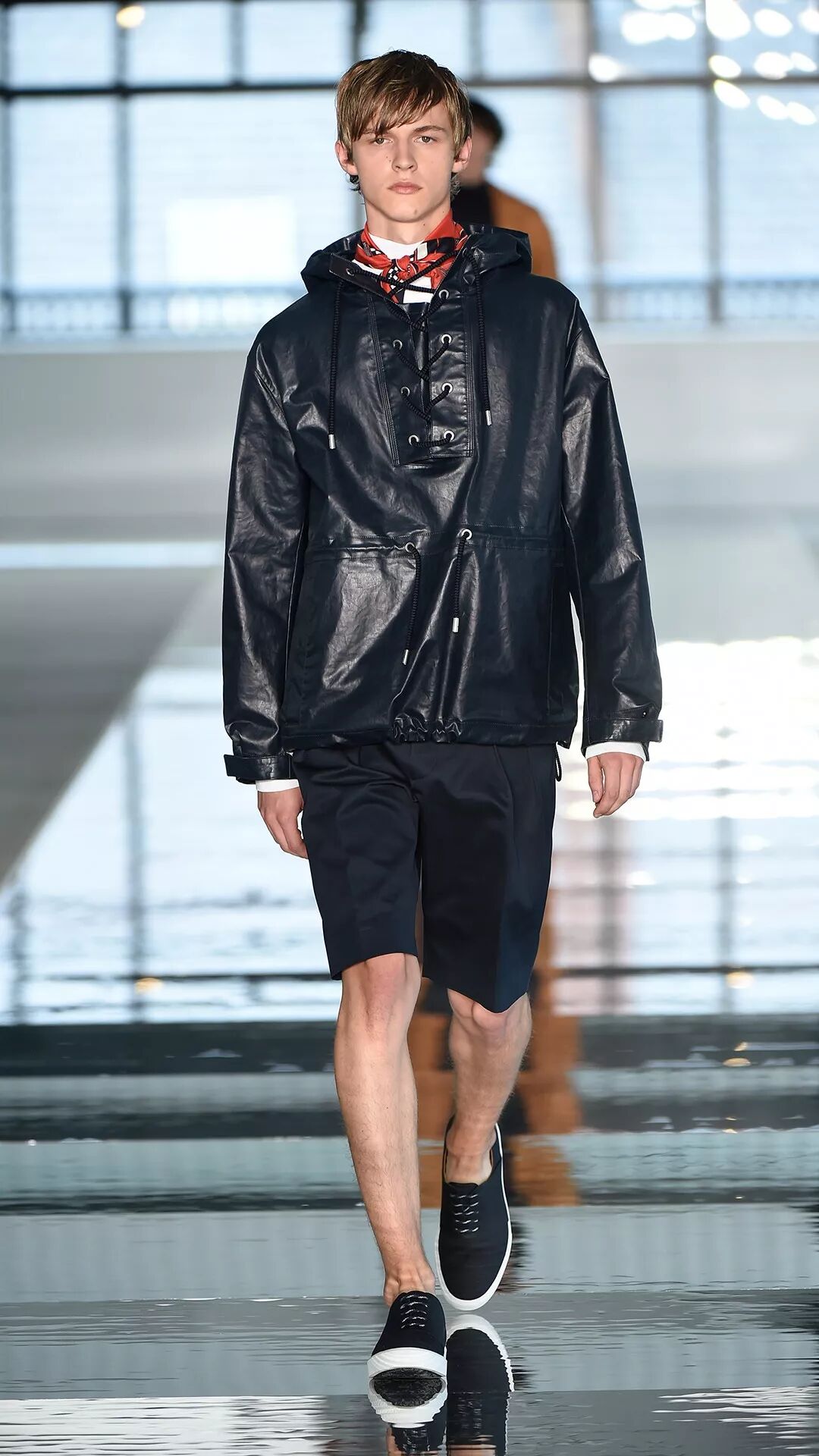 无论是廓形和面料,还是色彩与搭配,BOSS新系列均能带来轻松惬意的心境。慵懒的针织衫与运动鞋或凉鞋的搭配相得益彰,航海风外套平添运动感。西服套装外搭橡胶渔夫夹克或长款棉质雨衣,再配上宽松长裤和粗纺线纹理的针织运动衫,颇显时尚风范。
