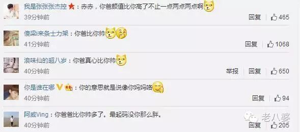 网友评论一边倒的说陈赫没有他爸爸帅。