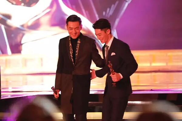 颁奖典礼由杨澜和佟大为主持。从大学之后就没当过主持人的佟大为硬是紧张出了一脑门儿汗。瞧这小伙站得跟小白杨似的,心疼。