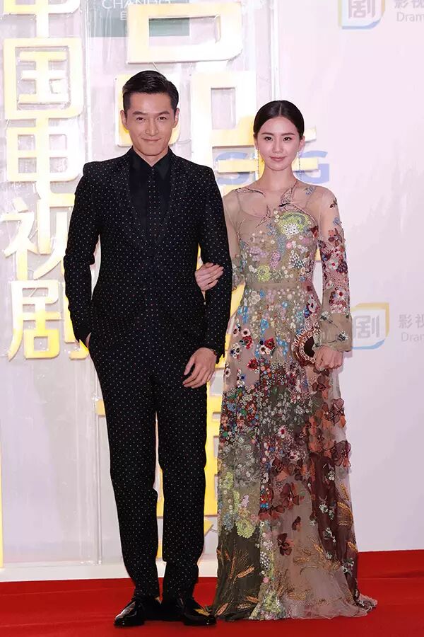 胡歌和刘诗诗。宗主这身波点套装,真是尽显顽童本质啊。诗诗这一身,照片上看来实在平平,现场效果倒是不错。