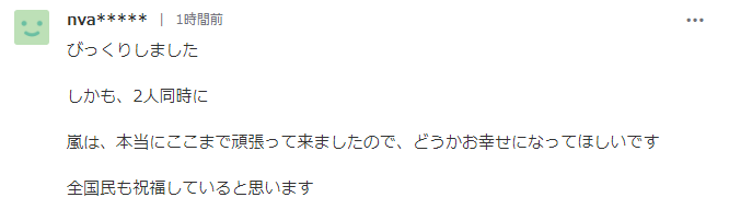 吓了一跳,还是两人同时宣布。岚真的是一直努力到现在,希望能幸福。我想全国人民都在祝福。