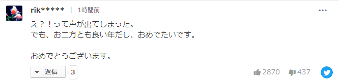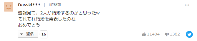 两人的结婚讯息也瞬间登上了日本各大社交平台的热搜。