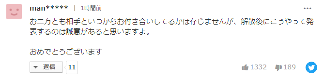 虽然两边都不知道是何时开始交往的,但是在解散后发表我觉得还是很有诚意的,恭喜。