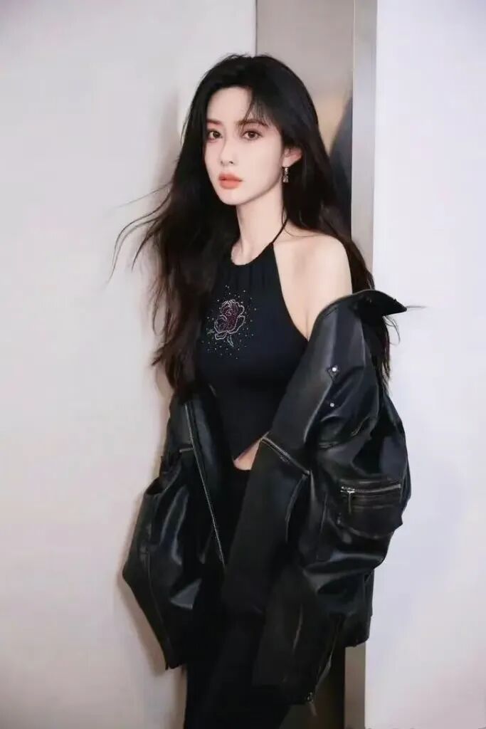 这一身黑色肚兜的穿搭无疑是一次极具艺术感的尝试,既大胆又不失优雅,既传统又充满现代感。