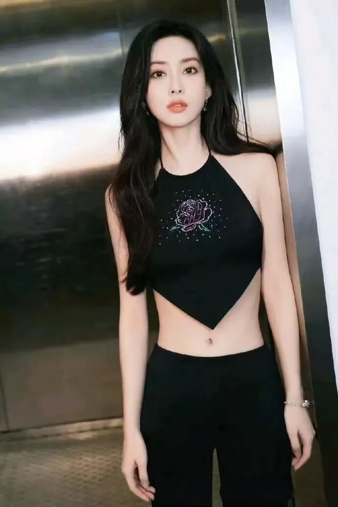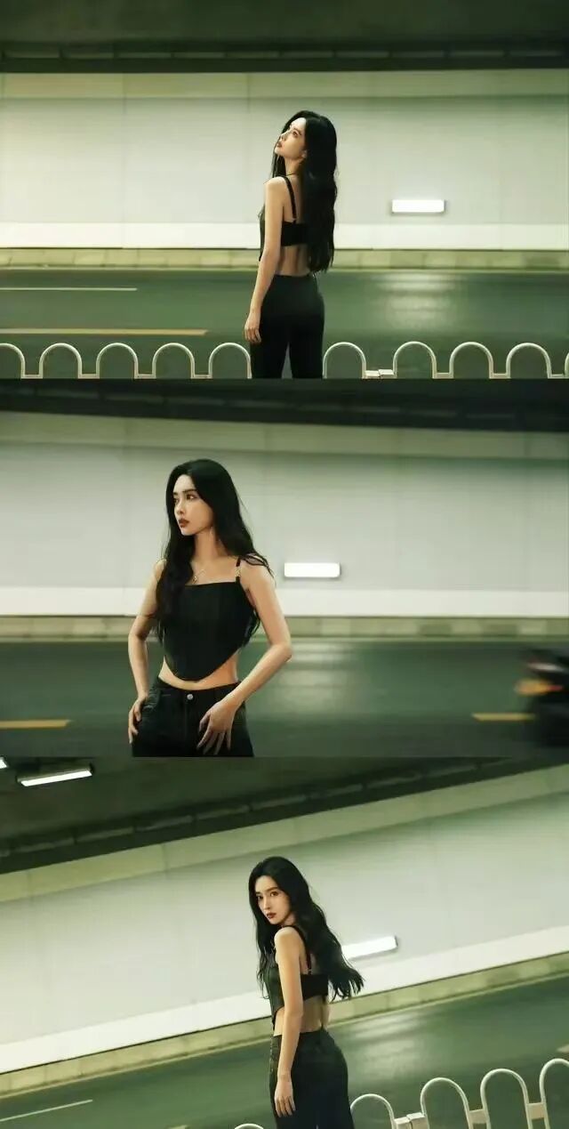 照片中,孟子义身着一件精致的黑色肚兜,勾勒出她纤细修长的曲线,将东方女性的柔美与力量感完美融合。