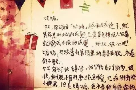 他们家似乎习惯了这样的方式。儿子也时常会写在她生日和母亲节,写一些卡片送给她。