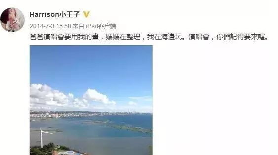 所以儿子小王子的言谈里都是满满的爱:爸爸演唱会要用我的画,妈妈在整理……很简单的描述,却足够温暖。
