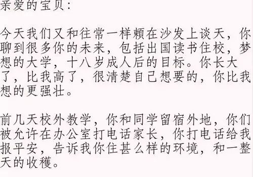 她说,离婚了,绝不和孩子说对方的对错,而是告诉他事实。即使爸爸和妈妈的缘份消失了,却还有尊重。一定要教会他尊重,因为如果你教会他恨,他长大第一个恨的人一定是你。要相信他有承担的能力和智慧,去处理他和你之间的关系、和爸爸之间的关系。